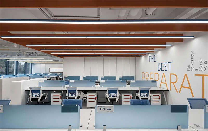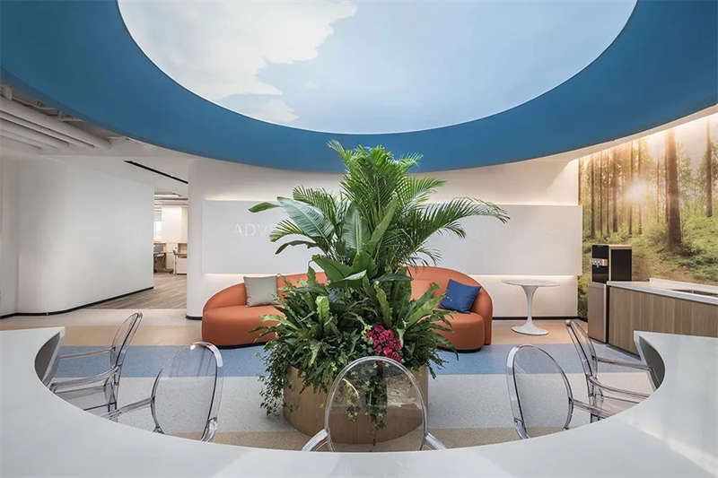 靜謐中疊出粼粼波光,讓本是凝固的空間,因人類與自然、時間與空間有了交疊,過往與未來也有了關聯(lián);復行數(shù)十步,豁然開朗…"虛"與"實"相生為境,入:未來之境,獨特的構成方式、造型藝術感為人類電子產品護航;引進公共辦公區(qū),公共辦公區(qū)的空間以原色調為主,讓整個辦公室設計看起來更為沉穩(wěn)低調,營造出一種安靜沉淀的氛圍。趣味性的吧臺、參差的綠翼"無盡之柱",藝術創(chuàng)意品味的貫穿,享受與眾不同的辦公方式。
