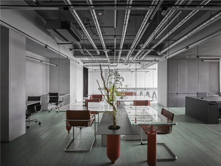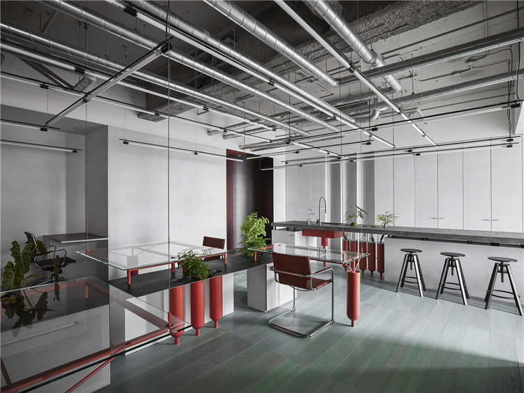 當靈感關(guān)鍵抓緊"科學(xué)"而非"辦公室",設(shè)計師希望強化產(chǎn)業(yè)屬性里的科學(xué)基底,扭轉(zhuǎn)一般人對辦公室的刻板藍圖.回歸產(chǎn)品本身最貼近的實驗室、工廠環(huán)境,日日可見的試管、生鐵黑鐵、氣體輸送管,以及包裝承載科技氣體的獨特鋼瓶,擷取生產(chǎn)鏈上再熟悉不過的材質(zhì)與造型,拆解轉(zhuǎn)換成辦公空間的結(jié)構(gòu)形體.