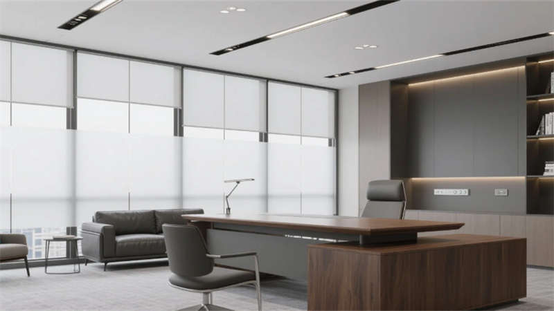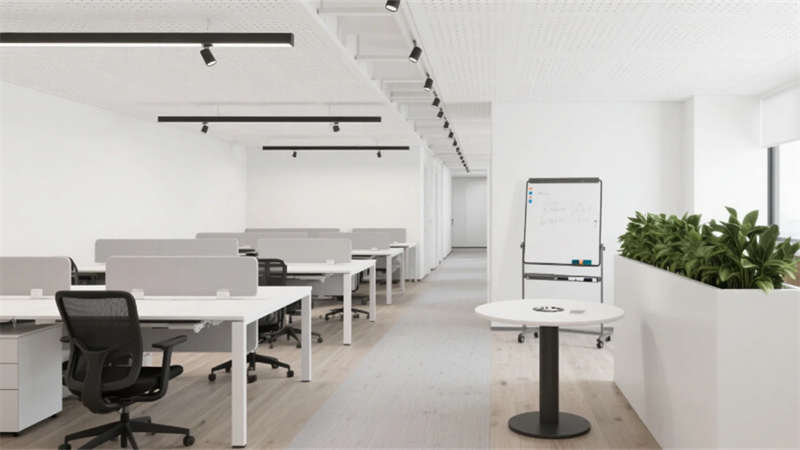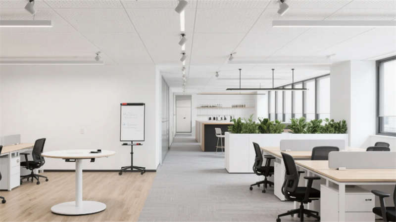 室內(nèi)空間延續(xù)外立面設(shè)計語言,企業(yè)大堂通過技術(shù)創(chuàng)新實現(xiàn)淺白大理石與木紋墻面的無縫拼接,懸浮式線性燈光系統(tǒng)可隨自然光線智能調(diào)節(jié)色溫。開放式辦公區(qū)配置智慧化模塊組合,可升降桌體與軌道射燈靈活適配多元場景,協(xié)作島集成無線充電與環(huán)境感知功能。高管辦公室采用智能霧化玻璃隔斷,實現(xiàn)隱私與通透的自由切換??萍紩h室搭載高清透明顯示系統(tǒng)與多聲道聲學(xué)設(shè)備,電動百葉簾與補光系統(tǒng)聯(lián)動打造智能會議環(huán)境。