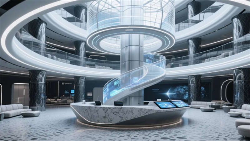 厘米級定位系統(tǒng)織就空間的數(shù)字神經(jīng)網(wǎng)絡(luò),實時感知行為軌跡的熱力圖譜。增強現(xiàn)實技術(shù)將虛擬協(xié)作層注入物理環(huán)境,會議紀(jì)要懸浮于白墻上空,項目進(jìn)度可視化流淌在地面光帶中。智能環(huán)境控制系統(tǒng)如同無形的指揮家,根據(jù)溝通場景自動調(diào)節(jié)光域范圍與氣流速度,讓空間氛圍隨對話內(nèi)容自然脈動。當(dāng)數(shù)字邏輯與建筑肌理深度融合,辦公室便升維為承載集體智慧的生命體。