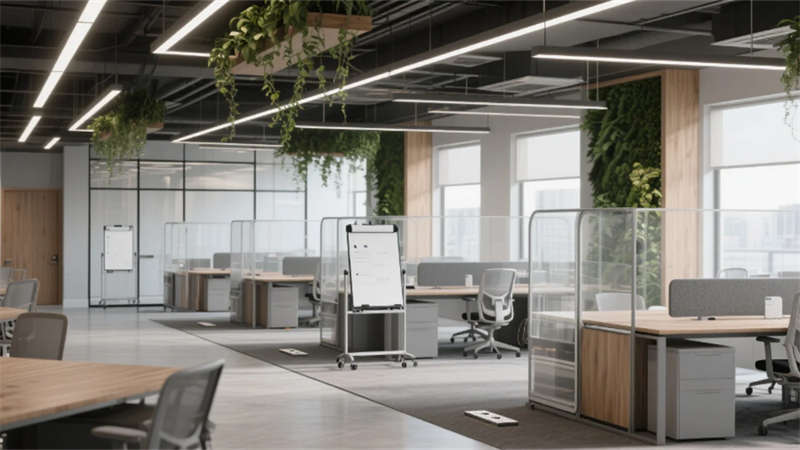 設(shè)計更以人文觸覺消解科技冰冷感:企業(yè)標志性的霧青藍貫穿于軟裝細節(jié),4000K色溫照明呵護視覺舒適度,模塊化綠植系統(tǒng)構(gòu)建立體呼吸網(wǎng)絡(luò)。從智能調(diào)光玻璃到聲學毛氈墻面,每處創(chuàng)新皆隱于無形,讓科技真正服務(wù)于人的感知體驗。這座合肥辦公空間,正以靜默的設(shè)計語言詮釋著未來工作場域的更多可能——當自然、科技與人文在此共振,辦公不再是程式化的容器,而成為激發(fā)創(chuàng)造力的有機生命體。