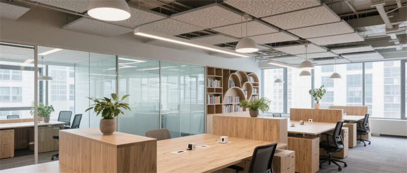 冥想茶室以留白哲學重構東方意境,宣紙移門篩落的光影與枯山水庭院共筑禪思之境;工業(yè)風健身區(qū)用攀巖墻與水培植物激活身體感知,鏡面金屬與綠意形成動態(tài)對話。從城市景觀的借景到生態(tài)材質的滲透,空間成為連接個體與自然、效率與詩意的媒介,詮釋合肥創(chuàng)新土壤中生長出的辦公美學新范式。