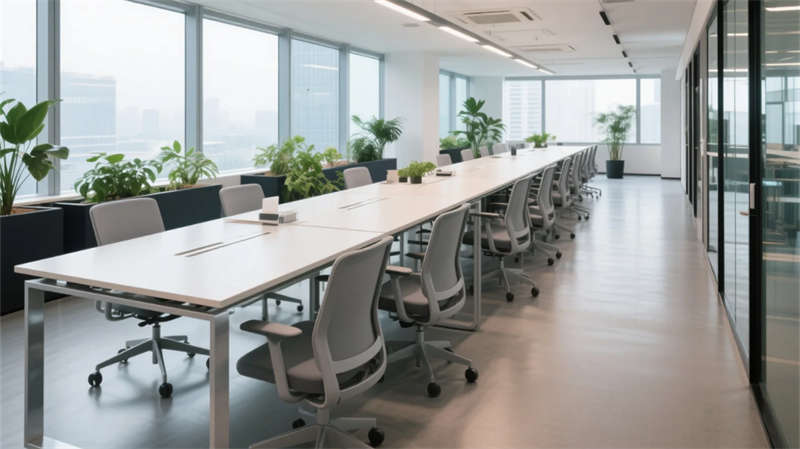 這座辦公空間以現(xiàn)代簡約風(fēng)格為核心,打造出高效而舒適的職場環(huán)境。大樓外觀采用輕盈的玻璃幕墻,幾何線條與城市天際線相融,傳遞出開放包容的氣息。步入內(nèi)部,前臺接待區(qū)以溫馨的木質(zhì)和石材元素迎接來訪者,營造親切的第一印象。開放式辦公區(qū)強(qiáng)調(diào)協(xié)作與靈動,簡潔的家具布局最大化自然光線,提升工作效率。會議室以通透的玻璃隔斷設(shè)計(jì),促進(jìn)透明溝通;休息區(qū)則通過柔和的沙發(fā)和綠植,提供放松身心的港灣。經(jīng)理辦公室延續(xù)簡約美學(xué),私密空間中兼顧功能與品味;創(chuàng)意工作室激發(fā)創(chuàng)新思維,可變的布局支持靈感碰撞;培訓(xùn)室則注重靈活性,適應(yīng)多元學(xué)習(xí)需求。整體設(shè)計(jì)融合美學(xué)與實(shí)用,每個功能區(qū)無縫連接,形成流暢動線,營造出寧靜而富有活力的氛圍。項(xiàng)目立足于合肥,展現(xiàn)了現(xiàn)代職場的新典范——簡約不簡單,高效中見人文關(guān)懷,為未來工作方式注入清新之風(fēng)。