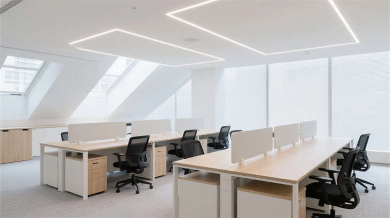 本設(shè)計以現(xiàn)代簡約為核心理念,通過光與自然的交融重塑辦公體驗。空間以純凈的白色與溫潤木色為主調(diào),輔以低飽和度灰綠點綴,營造通透靜謐的氛圍。落地窗最大化引入自然光線,與線性燈帶共同勾勒出流暢的視覺韻律;綠植貫穿每個角落,從大堂的琴葉榕到辦公區(qū)的垂直花園,賦予空間呼吸感。