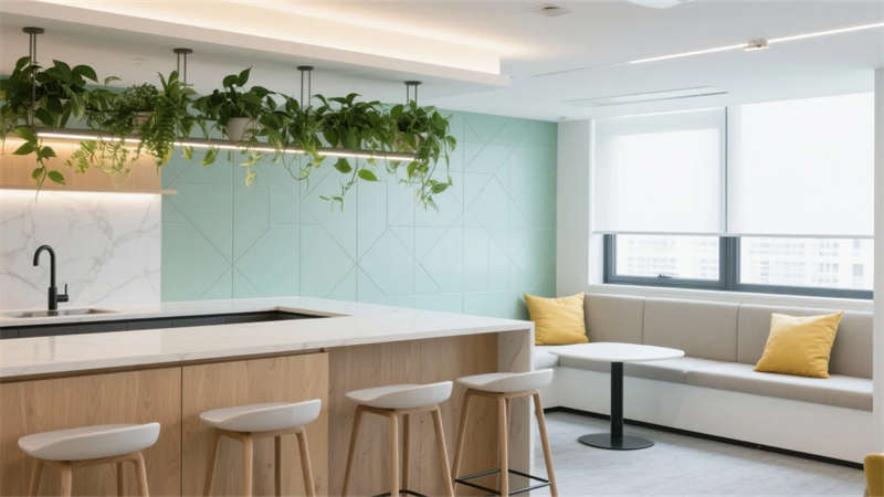 設計強調(diào)人文關懷,休閑區(qū)暖調(diào)燈光與柔軟卡座形成情緒緩沖帶,茶水間吧臺成為非正式社交樞紐。材質選擇凸顯可持續(xù)理念,微水泥、再生木材與綠植系統(tǒng)貫穿始終,呼應簡約背后的生態(tài)意識。整體空間在合肥這座創(chuàng)新之城,詮釋了高效辦公與人文溫度共生的當代范式。