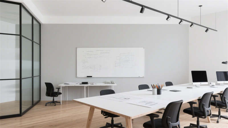 本設(shè)計(jì)延續(xù)現(xiàn)代極簡主義風(fēng)格,以高級灰與白色為基底,巧妙融入原木色元素,讓整體空間既顯簡潔利落,又不失溫潤質(zhì)感??臻g布局注重功能性與舒適度的平衡,摒棄繁雜裝飾,用流暢的線條和通透的格局,營造出開闊明亮的辦公氛圍。?