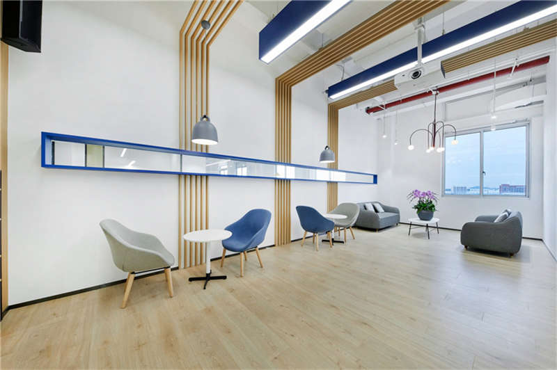 工位數(shù)量需求雖然龐大,但甲方對多元化的功能區(qū)的需求并未減少。于是我們將咖啡吧、茶水間、休閑區(qū)這幾個功能進行融合,破除了空間的界定,將水吧區(qū)打造成一個開放性的多功能區(qū)域,賦予它全新定義,從而達到滿足員工的一系列休閑目的。