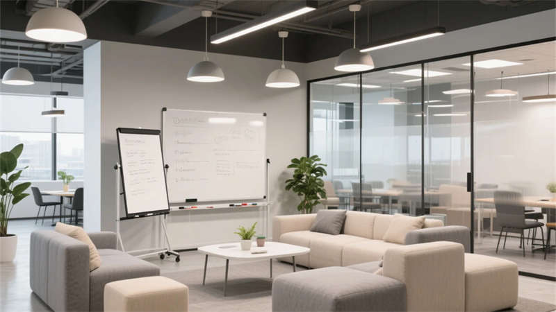 這個(gè)辦公室設(shè)計(jì)以現(xiàn)代簡(jiǎn)約風(fēng)格為核心,通過流暢線條和中性色調(diào),打造出一個(gè)和諧而高效的工作環(huán)境。整體布局強(qiáng)調(diào)開放性與功能性,功能區(qū)之間無(wú)縫銜接,利用玻璃隔斷和自然光,營(yíng)造通透感。接待區(qū)以溫馨氛圍迎接訪客,開放辦公區(qū)促進(jìn)團(tuán)隊(duì)協(xié)作,會(huì)議室提供寧?kù)o討論空間。休息區(qū)與茶水間則融入綠植元素,為員工提供放松角落,提升日常舒適度。經(jīng)理辦公室和專注區(qū)平衡了私密需求,協(xié)作空間鼓勵(lì)創(chuàng)意交流。設(shè)計(jì)注重人性化細(xì)節(jié),如柔和燈光和懸浮家具,減少視覺雜亂,同時(shí)強(qiáng)化生態(tài)理念。整個(gè)空間不僅美觀實(shí)用,還體現(xiàn)了對(duì)員工福祉的關(guān)懷,營(yíng)造出積極的工作氛圍。蚌埠元素貫穿始終,展現(xiàn)地方特色與現(xiàn)代美學(xué)的融合,讓辦公環(huán)境成為靈感源泉。