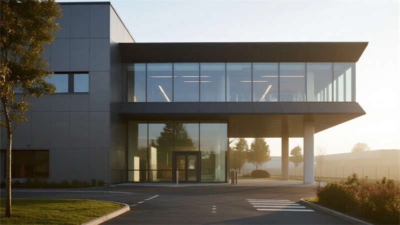 本設(shè)計(jì)以現(xiàn)代簡約語言重構(gòu)廠房美學(xué)。設(shè)計(jì)摒棄冗余裝飾,聚焦材料本質(zhì)——銀灰金屬立面與通透玻璃幕墻形成虛實(shí)對比,利落線條切割出幾何體塊,在光影流動(dòng)中彰顯力量感。廠區(qū)布局強(qiáng)調(diào)功能與自然的共生:屋頂光伏板陣列呼應(yīng)綠色生產(chǎn)理念,嵌入式空中花園與竹林連廊為鋼鐵空間注入呼吸感,員工休憩區(qū)模糊了工業(yè)與生活的邊界。