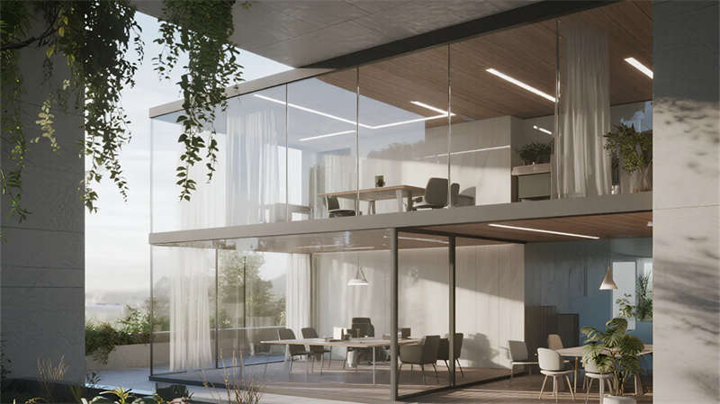 建筑內(nèi)部延續(xù)外部的純凈氣質(zhì),挑高車間利用天窗引入自然光源,無柱空間適配柔性生產(chǎn)線;辦公區(qū)采用模塊化玻璃盒子,內(nèi)外視野交融,營造開放協(xié)作氛圍。夜幕降臨時(shí),線性燈光勾勒建筑輪廓,宛若大地上的發(fā)光雕塑,傳遞理性與溫度并存的工業(yè)美學(xué)。項(xiàng)目以蚌埠地域文化為靈感,用現(xiàn)代設(shè)計(jì)語言書寫工業(yè)建筑新范式,成為兼具高效生產(chǎn)與人文關(guān)懷的可持續(xù)典范。
