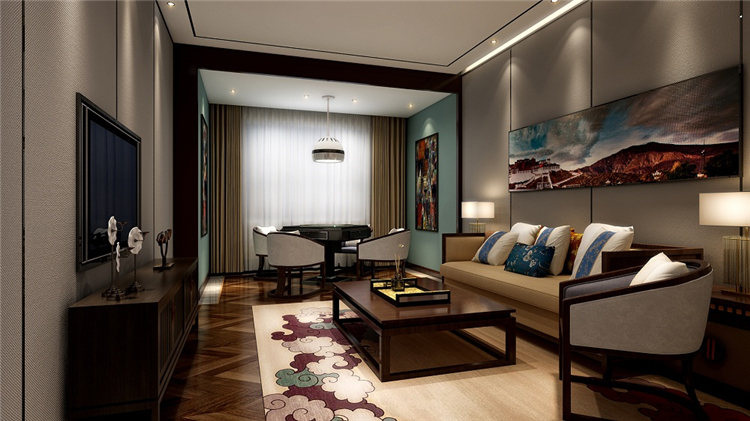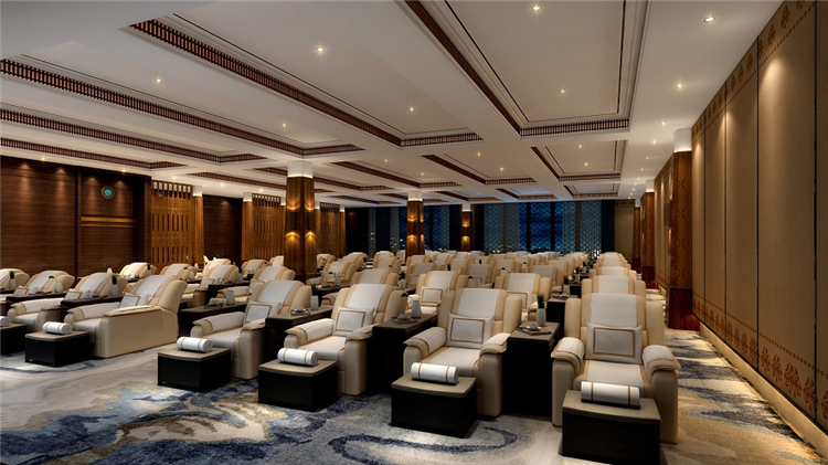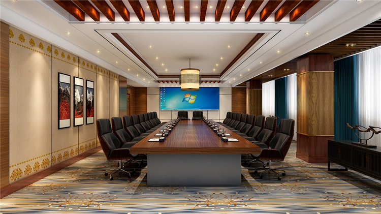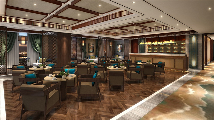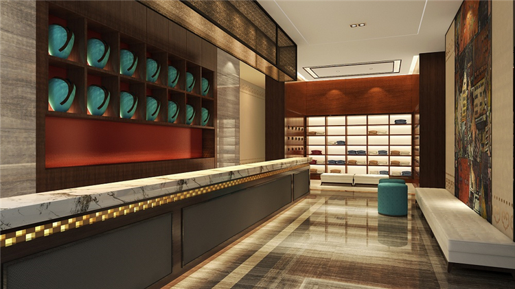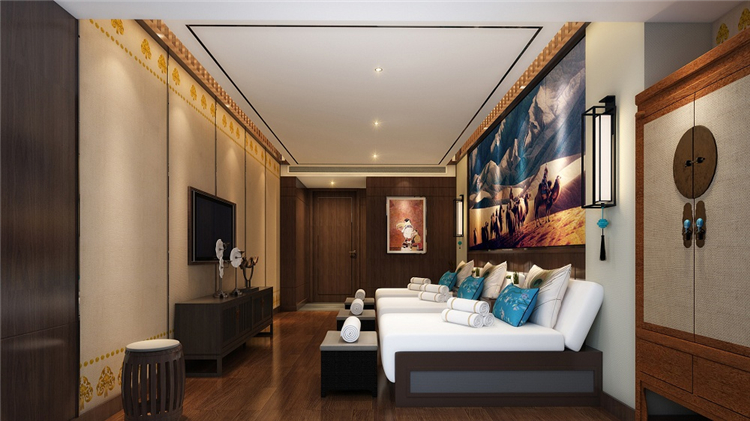 設(shè)計(jì)師同時(shí)考慮到地域民族文化和功能實(shí)用性,結(jié)合現(xiàn)代簡約與傳統(tǒng)藏式風(fēng)格,為往來的游客提供一個(gè)放松休憩的完美場所。設(shè)計(jì)師主要運(yùn)用藏藍(lán)、金黃、喇嘛紅等濃重色彩進(jìn)行搭配,靈感既來自于藏族傳統(tǒng)文化及宗教藝術(shù),也來自于雪域高原山高天藍(lán)水長花艷的自然景觀。借用柱網(wǎng)結(jié)構(gòu)、幾何紋路、吉祥花等藏式建筑形式和圖案進(jìn)行裝飾和點(diǎn)綴,但將繁復(fù)的式樣盡量精簡平面化,取其古樸、神奇、粗獷的神韻,表達(dá)一種平衡、對(duì)比、和諧統(tǒng)一的構(gòu)圖規(guī)律和審美思想。