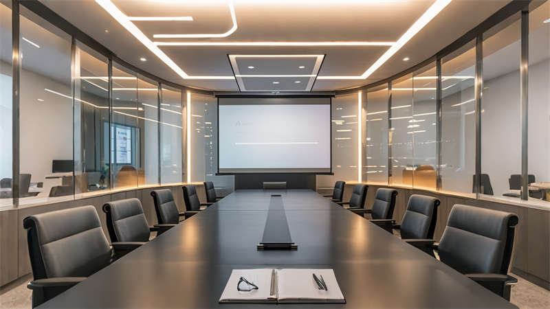 2)智能會(huì)議系統(tǒng)集成無(wú)線投影、聲學(xué)優(yōu)化和情景照明模式;
