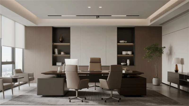 在現(xiàn)代辦公空間的設(shè)計(jì)中,該項(xiàng)目以簡(jiǎn)約美學(xué)為核心,打造出和諧統(tǒng)一的環(huán)境。建筑外觀采用流暢線條和玻璃幕墻,不僅增強(qiáng)自然光滲透,還營(yíng)造出輕盈通透的視覺(jué)感。內(nèi)部空間中,開(kāi)放式辦公室布局寬敞,工作站排列有序,綠植點(diǎn)綴其中,促進(jìn)團(tuán)隊(duì)協(xié)作與創(chuàng)新氛圍。經(jīng)理辦公室則注重私密性,簡(jiǎn)約家具和功能性區(qū)域確保高效工作,同時(shí)通過(guò)柔和色調(diào)和藝術(shù)品保持舒適感??偛棉k公室更顯優(yōu)雅,落地窗引入城市景觀,會(huì)議區(qū)與休息空間無(wú)縫銜接,強(qiáng)調(diào)領(lǐng)導(dǎo)力的從容與靈感。整體設(shè)計(jì)貫穿現(xiàn)代簡(jiǎn)約理念,中性色彩和自然元素減少視覺(jué)雜亂,提升專注度與幸福感。項(xiàng)目位于合肥,成為當(dāng)?shù)剞k公環(huán)境的典范,融合城市特色與可持續(xù)思維,打造出既實(shí)用又具美感的理想工作場(chǎng)所。