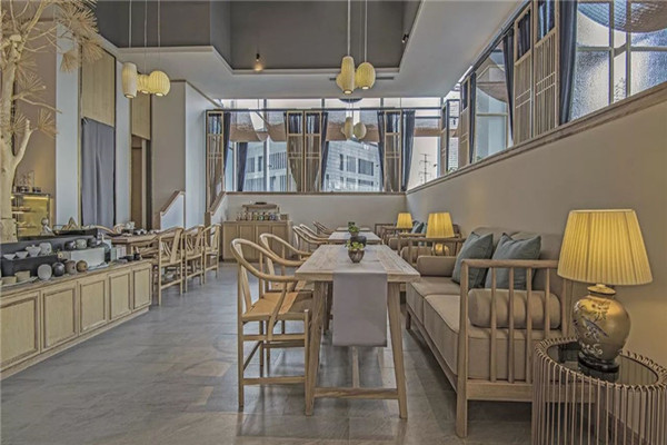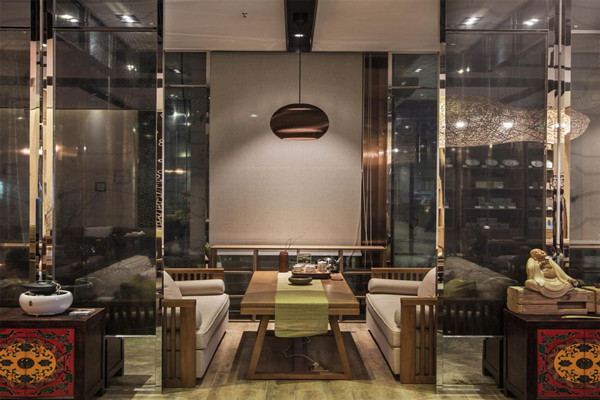 茶藝館的空間設(shè)計要與其總體設(shè)計風(fēng)格相匹配。在空間布置上可通過虛的手法遮擋視線,似隔非隔,隔中有透,實中有虛。例如利用布慢、漏墻、珠簾、屏風(fēng)、竹籬、木柵等緩沖通道與視線;又如,利用通道的回繞曲折相通,轉(zhuǎn)身回眸處別有一方天地。適當(dāng)?shù)姆指暨€可滿足部分客人不想被打擾的心理,這就是所謂的"園必隔"。