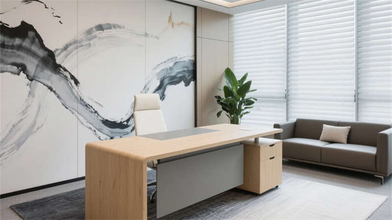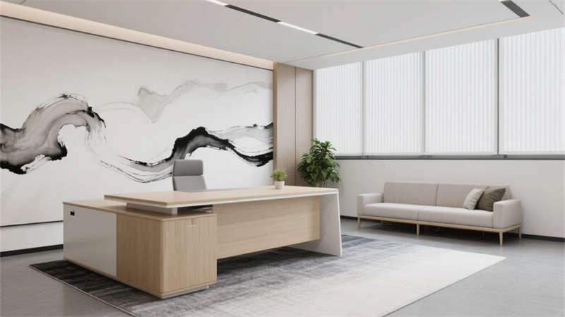 該設(shè)計以現(xiàn)代簡約語言重構(gòu)辦公空間秩序,通過光影與材質(zhì)的精妙平衡,營造滁州商務(wù)美學(xué)的當(dāng)代樣本。空間以淺木、暖灰與啞光白為主調(diào),線性光帶貫穿各區(qū)域,形成視覺連續(xù)性。開放辦公區(qū)借落地窗引入瑯琊山景光影,百葉簾調(diào)節(jié)自然與人工光的韻律;協(xié)作區(qū)弧形沙發(fā)與綠植墻柔化幾何理性,激發(fā)團隊創(chuàng)造力。
