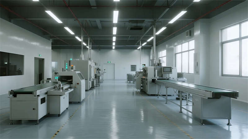 空間內核強調人性化體驗:挑高中庭以懸浮樓梯創(chuàng)造輕盈動線,屋頂花園成為員工觸摸自然的窗口;無柱車間與智能實驗室展現(xiàn)工業(yè)精密感,而木格柵連廊與綠植墻則注入人文溫度。夜幕降臨時,建筑化為光影容器,冷白光帶勾勒結構輪廓,暖黃窗格透出工作場景的活力。