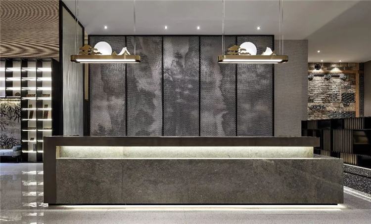 酒店在不同層次的設(shè)計(jì)上靈活運(yùn)用了徽州文化的核心特點(diǎn)來(lái)汲取神韻氣質(zhì),結(jié)合空間的整體系列性,將文化元素滲透到每一個(gè)細(xì)節(jié)中,將經(jīng)典重現(xiàn).營(yíng)造極具東方美學(xué)觀感的藝術(shù)空間.設(shè)計(jì)團(tuán)隊(duì)通過(guò)對(duì)傳統(tǒng)與現(xiàn)代結(jié)合,含蓄與精致并存,兩種不同意境相映成輝,從文化底蘊(yùn)、材料、軟裝色彩......去推敲空間的序列,實(shí)現(xiàn)了酒店的魅力.既體現(xiàn)出人們對(duì)當(dāng)代藝術(shù)與文化的追求,又勾勒出東方意境的沉穩(wěn)靜謐.