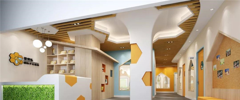 將品牌形象貫穿空間始終,加深品牌印象和空間趣味,也寓意學習語言要像勤勞的蜜蜂一樣付出努力,慢慢累積,最終收獲甜蜜的果實。