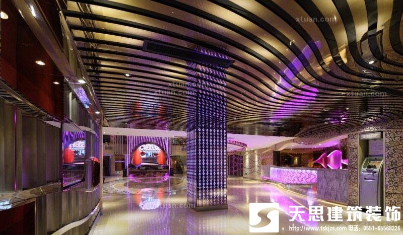 色彩和圖畫調(diào)整:KTV大堂設(shè)計色彩具有分量感(首要取決于明度改變),當(dāng)頂棚上選用深色彩涂料時,就會發(fā)生壓抑感(虎頭蛇尾)。所以,在通常的城市住所中通常很少用深色彩涂刷天棚。但是這兒也有一種別的的表象,一個十分巨大的天棚(比方體育場館、舞廳)選用黑色彩的涂料,使人看不清天花的概括,給人一種艱深無邊、如黑夜天穹通常的感觸,這即是前面說到的“模糊邊界”現(xiàn)象。