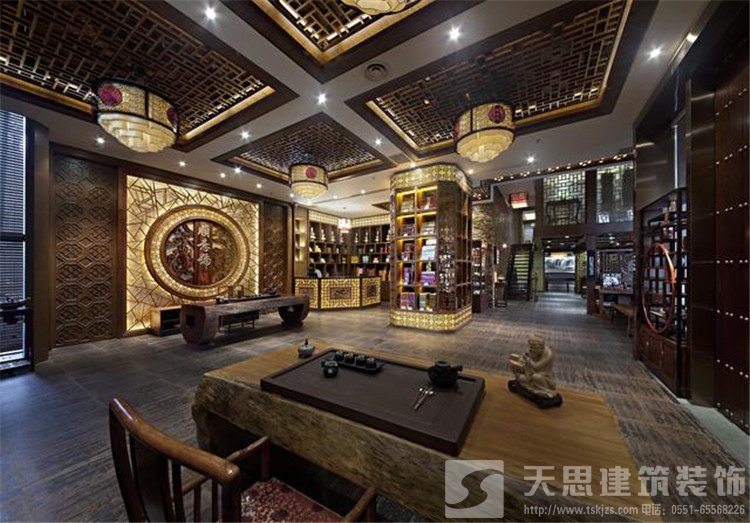 古典中式裝修茶樓會所大廳設(shè)計溫馨寬敞散發(fā)著獨特的茶文化,整齊有序紅木茶展柜色澤渾厚且秀麗透亮,嵌入式方格天花吊燈搭配現(xiàn)代感極強的紅木圈椅含蓄而內(nèi)在,泡一杯清茶,品味葉的裊娜,水的清澈,便有了清風(fēng)自來的心爽。