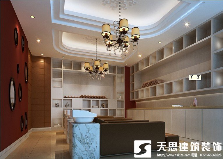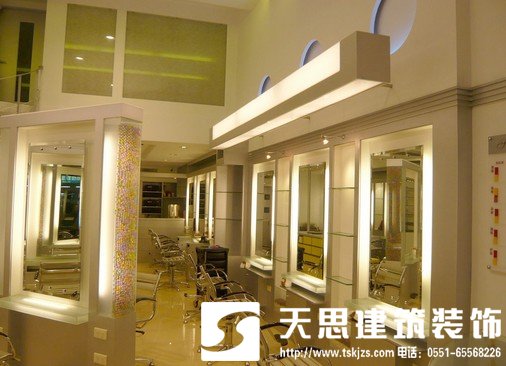美發(fā)區(qū)是美發(fā)店裝修的重中之重。在保證干凈整潔的基礎(chǔ)上,給簡(jiǎn)單的鏡子和椅子組合而成的美發(fā)區(qū)增添特色。把美發(fā)區(qū)的鏡子打破傳統(tǒng)的四方形形狀,安上扇形的鏡子,讓人眼前一亮。鏡子旁邊的墻壁也不能忽視,可以貼上一些有趣的圖案不顯單調(diào)。燙染區(qū)以繽紛的色彩,簡(jiǎn)潔的風(fēng)格將色彩最大化,以顯示多種顏色與風(fēng)格,設(shè)計(jì)以不銹鋼與玻璃突出其美感。燙染區(qū)的色吧造型應(yīng)以時(shí)尚、前衛(wèi)、強(qiáng)烈色彩為主導(dǎo)。洗頭區(qū)及沖水區(qū)應(yīng)以干凈明快為主題來(lái)設(shè)計(jì),墻面用噴漆玻璃來(lái)做裝飾,讓顧客對(duì)本店感受到潔凈的形象。產(chǎn)品區(qū)應(yīng)該分洗護(hù)產(chǎn)品及燙染產(chǎn)品,而且產(chǎn)品展示的位置應(yīng)該明確區(qū)分開來(lái)。