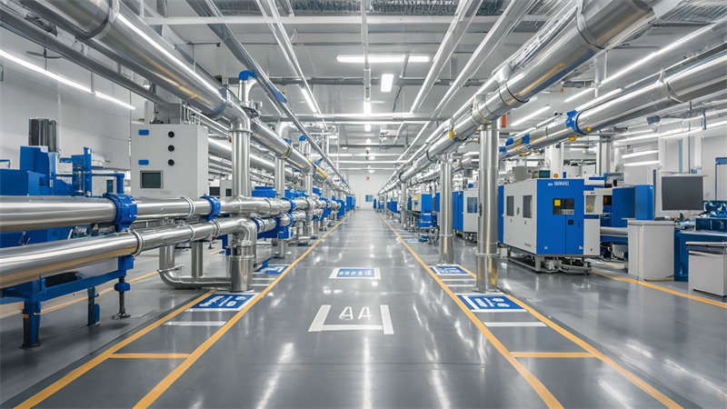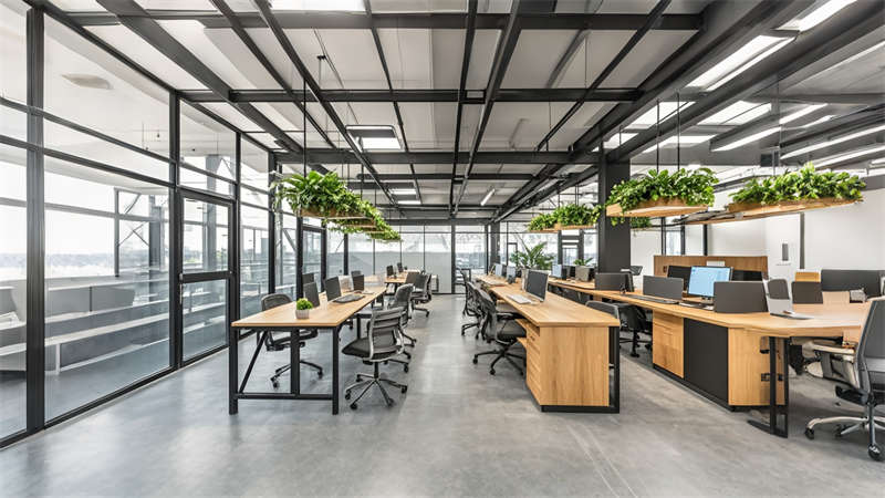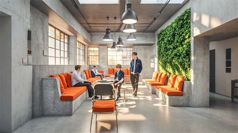 3) 色彩策略運用冷色調提升作業(yè)專注度,暖色點綴緩解視覺疲勞。材料選擇上,金屬格柵、清水混凝土與環(huán)氧地坪的搭配兼顧耐用性與美學表達,集成式 LED 照明系統實現能耗降低。該設計在滿足 ISO 生產標準的同時,通過人性化休息區(qū)與智能管理系統,打造現代制造業(yè)空間新標桿。
