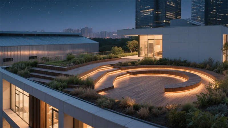 屋頂花園化身綠色冠冕,夜幕下的篝火裝置促發(fā)非正式交流。展示廊道如科技畫廊,嵌入式光效凸顯產品美學價值。整體空間將合肥的地域創(chuàng)新精神具象化——剛性工業(yè)骨架中生長出人文溫度,機械韻律與自然節(jié)拍在此共鳴,為產業(yè)升級提供可持續(xù)的空間范本。