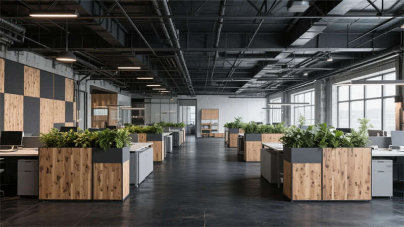 這座廠房以"工業(yè)容器中的自然共生"為核心理念,打破傳統(tǒng)生產空間的冰冷邊界。流動的銀灰主調串聯起全場景,裸露的結構肌理與溫潤木元素形成張力碰撞,智能設備在光影交織中高效運轉。
