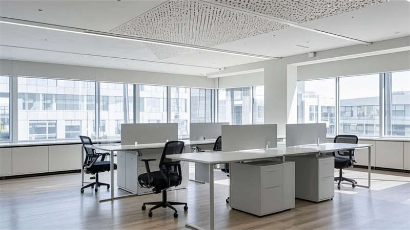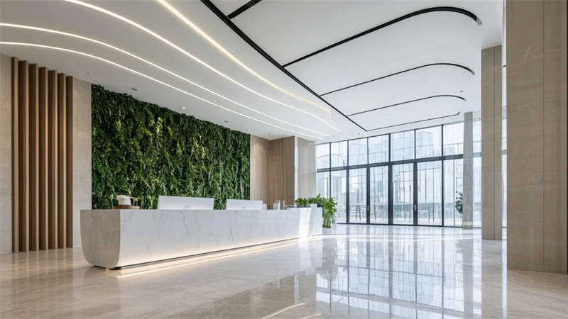 功能布局強調(diào)流暢性:開放式辦公區(qū)借全景落地窗引入室外綠意,提升工作舒適度;智能車間通過規(guī)整的管線排布與環(huán)氧地坪,傳遞高效與秩序;員工休閑區(qū)與生態(tài)中庭形成呼吸節(jié)點,綠植與藝術(shù)裝置柔化工業(yè)環(huán)境的剛性。設(shè)計注重光線的戲劇性表達(dá),線性燈光與天窗協(xié)作,在走廊、會議室等區(qū)域投落細(xì)膩光斑,強化空間縱深感。