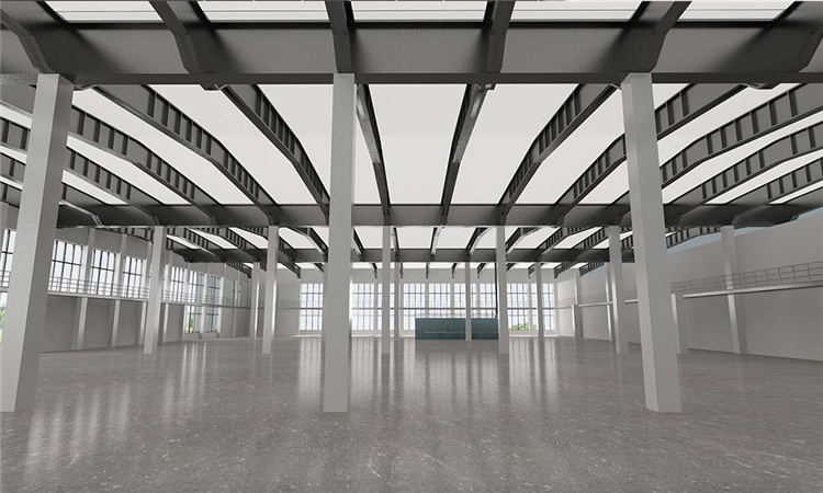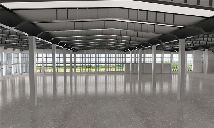該廠房對地面承重的要求比較高,同時對廠房整體的的美觀也有所要求,在該案例的地面建造上使用混凝土做為地面地基,在地基的基礎上覆蓋一層環(huán)氧地坪,保證了美觀同時也起到防塵防靜電的作用。頂部為鋼結構框架,消防、通風、及中央空調都在該案例中有所運用,在保證實用的基礎上不失大方和簡約的風格。