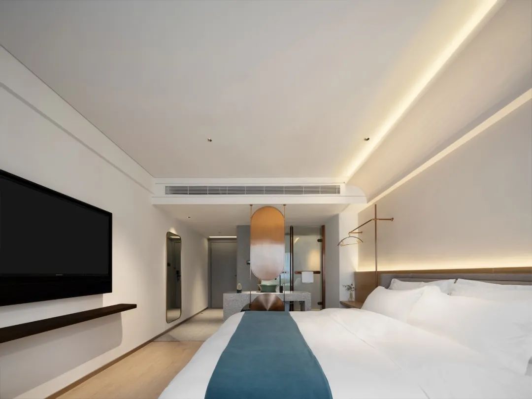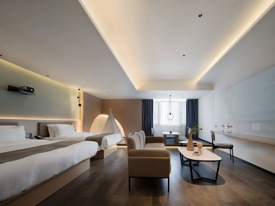 在線條曲度與建筑結構的銜接中交融出感性層面的驚喜,令入住者“循著光”下榻酒店,在體驗與感受中為空間注入當下的即時形態(tài),由此,人在空間里是造訪者亦是著境者,是觀賞者,亦是參與者。情與境中,無盡遐思。