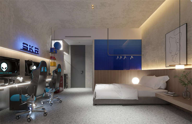 相信很多電競(jìng)酒店投資人在籌備設(shè)計(jì)時(shí),都會(huì)思索如何將電競(jìng)元素和入住體驗(yàn)完美融合。一方面需考慮符合電競(jìng)愛好者審美,增加潮酷元素;另一方面則需考慮睡眠質(zhì)量,減少炫目元素。