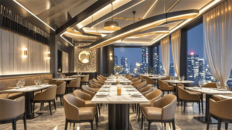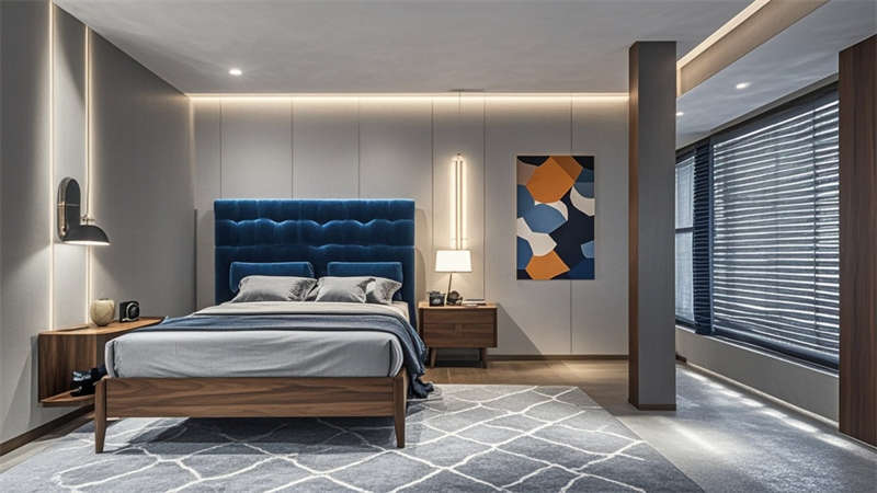 本2000平現(xiàn)代簡約風(fēng)格酒店設(shè)計(jì)以'城市綠洲'為核心理念,通過流線型空間布局構(gòu)建高效動(dòng)線。大堂采用懸浮式水晶燈與淺灰大理石地面形成視覺焦點(diǎn),金屬與木質(zhì)的冷暖對比提升空間質(zhì)感??头繀^(qū)運(yùn)用深藍(lán)與淺灰的撞色搭配,配合智能照明系統(tǒng)實(shí)現(xiàn)多場景模式切換。公共區(qū)域大量運(yùn)用無框玻璃隔斷,保持空間通透性的同時(shí)實(shí)現(xiàn)功能分區(qū)。色彩體系以米白為基底,點(diǎn)綴深胡桃木與香檳金,局部運(yùn)用幾何紋樣增強(qiáng)設(shè)計(jì)感。材料選擇注重環(huán)保與耐用性,石材、金屬與吸音材質(zhì)的組合兼顧美觀與實(shí)用。燈光設(shè)計(jì)采用多層次照明系統(tǒng),筒燈、燈帶與裝飾照明相結(jié)合,營造舒適光環(huán)境。各功能區(qū)域通過統(tǒng)一的材質(zhì)語言和色彩邏輯保持整體協(xié)調(diào),同時(shí)根據(jù)不同使用需求進(jìn)行個(gè)性化設(shè)計(jì),如會(huì)議室配備移動(dòng)隔斷實(shí)現(xiàn)靈活分隔,健身中心采用防滑橡膠地板等專業(yè)處理