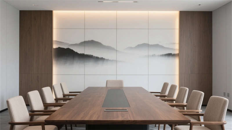 健身區(qū)與會(huì)議室平衡功能與美學(xué),金屬器械融入水墨肌理,會(huì)議長桌呼應(yīng)胡桃木的溫潤質(zhì)感。整體設(shè)計(jì)弱化邊界,讓光、影、材質(zhì)在流動(dòng)中對(duì)話,為合肥注入一處隱于城市的東方精神綠洲。