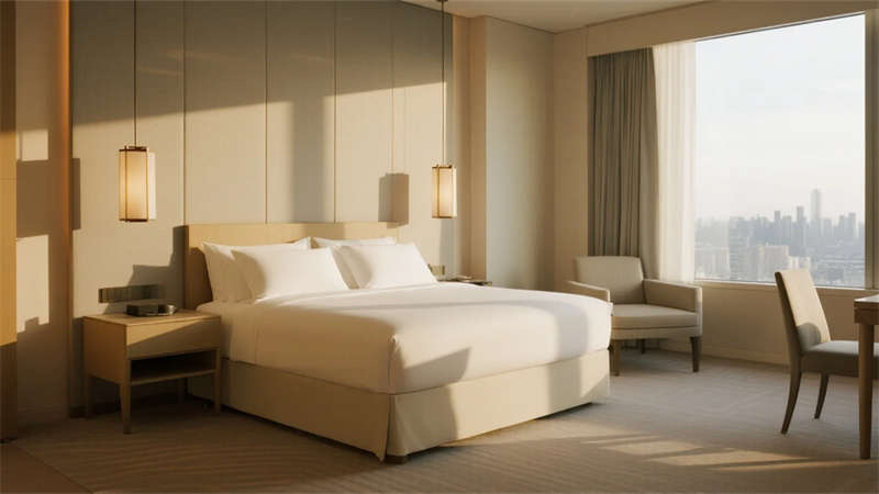 空間布局開闊通透,巨大的落地窗將自然光引入室內(nèi),與精心設(shè)計的隱藏式燈光系統(tǒng)共同營造出溫暖而富有層次的光影氛圍。從大堂的恢弘大氣到客房的靜謐溫馨,每一處細(xì)節(jié)都旨在為旅客提供一種沉浸式的、回歸本真的休憩體驗。整體設(shè)計強(qiáng)調(diào)人與空間的情感連接,在簡約中蘊(yùn)含深度,于現(xiàn)代中流露溫潤,成就了一處城市中可呼吸、可感知的詩意棲居地。