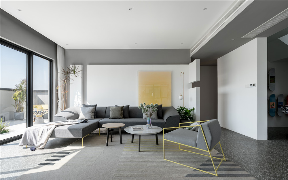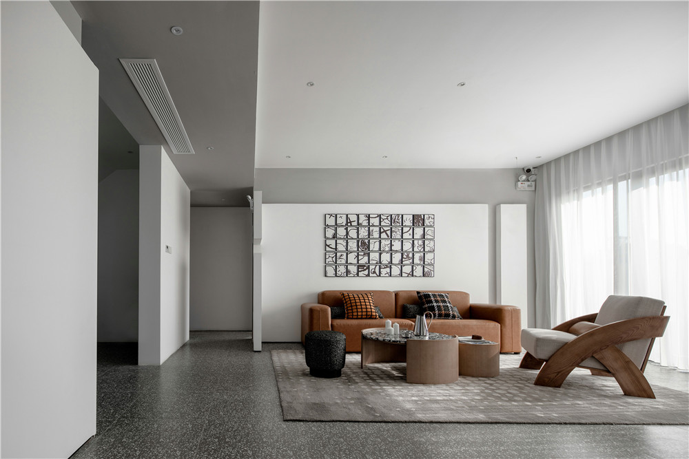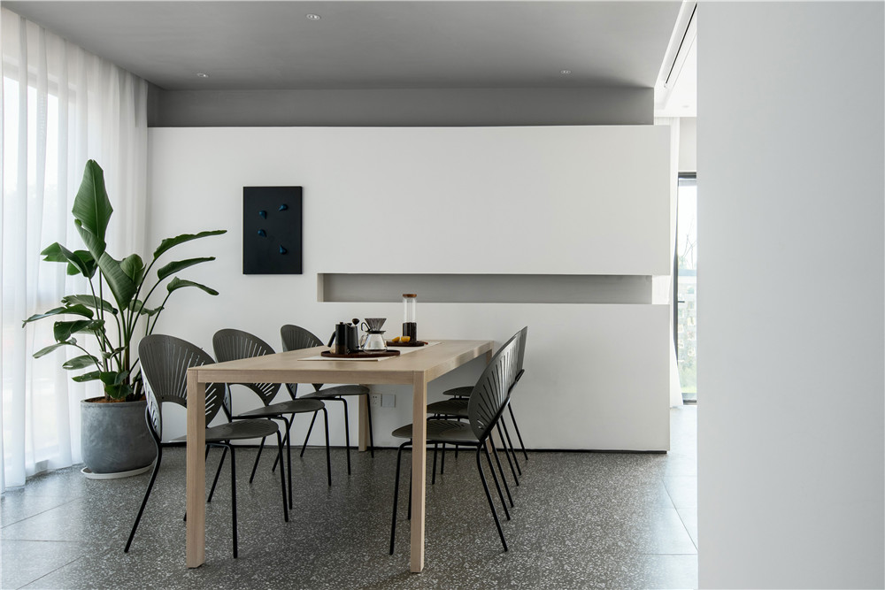 設計師一直在思考如何營造空間的秩序、空間的關系、空間的情感,最終打造了一個“無限藝術空間”,整個空間運用簡單的方形,相互疊加、構筑,空間的關系或敞開,或閉合,達到一種無邊界的空間狀態(tài)。推掉原有的墻體,又新建新的墻體,用“不完整”的方形劃分空間界限。同時在色彩上,回應對“藝術”的思考,設計師運用了白色,這種無色的顏色,也在述說著空間情感,更純粹,更真實,且沒有邊界,為每一位到訪者留下無限的想象空間。