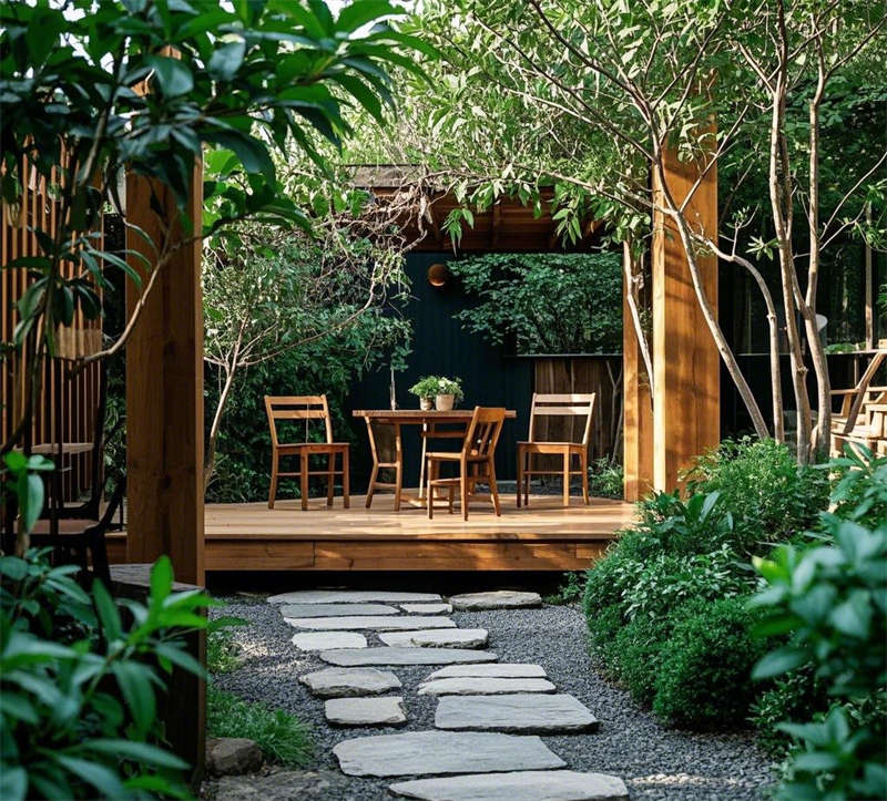 這套1000平民宿設計以自然簡約風格為核心,營造出溫暖舒適、貼近自然的居住體驗。整體空間以原木色調(diào)為主,搭配米白色、淺灰等柔和色彩,輔以綠植點綴,呈現(xiàn)出清新自然的氛圍。大堂以原木色前臺和藤編吊燈為亮點,搭配落地窗引入充足光線,營造出溫馨的迎賓空間??蛷d采用開放式布局,原木地板與編織地毯相得益彰,搭配圓形茶幾和落地燈,打造出輕松愜意的休閑區(qū)域。餐廳延續(xù)自然風格,長桌與藤編餐椅的組合簡潔大方,開放式廚房與吧臺的設計增強了空間的互動性。臥室分為兩種風格,一種以藤編床頭和棉麻床品為主,營造出舒適的睡眠環(huán)境;另一種采用日式榻榻米設計,搭配推拉門和竹林景觀,傳遞出寧靜禪意的氛圍。浴室同樣注重自然元素的運用,圓形浴缸與綠植的結合讓人仿佛置身于自然之中,而日式風格的浴室則通過竹制裝飾和庭院景觀,進一步強化了寧靜放松的體驗。戶外庭院以石板小路和木質(zhì)平臺為主,搭配休閑桌椅和綠植環(huán)繞,為客人提供了一個親近自然的戶外休閑空間。整體設計注重材質(zhì)與光影的運用,將自然元素與現(xiàn)代簡約風格完美融合,打造出一個舒適、放松的民宿空間。
