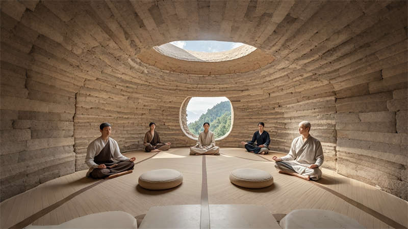 設(shè)計(jì)亮點(diǎn)包括:1)夯土墻面內(nèi)置光纖導(dǎo)光系統(tǒng),夜間呈現(xiàn)星圖光影;