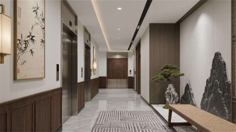 從外立面漸變格柵光影,到電梯廳微型枯山水,設(shè)計(jì)以“少即是多”的克制,讓東方精神在當(dāng)代場景中自然生長,成就一座可游、可居、可品的精神容器。