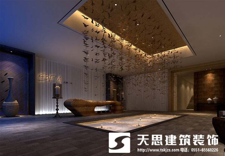 六安瀾庭養(yǎng)生會(huì)所采用簡約現(xiàn)代風(fēng)格。養(yǎng)生會(huì)所大廳一座異形的藝術(shù)品,獨(dú)特時(shí)尚,一傾而泄的水晶燈,在荷花屏風(fēng)的映襯下,高貴自然,富有藝術(shù)感。洽談區(qū)、接待區(qū)的裝修設(shè)計(jì)沒有采用過多的裝飾,局部的深褐色吊頂以及墻體,突出了養(yǎng)生會(huì)所的獨(dú)特之道。整個(gè)養(yǎng)生會(huì)所的軟裝搭配也是恰到好處,體現(xiàn)了養(yǎng)生環(huán)保之意。裝修設(shè)計(jì)休閑自然,是放松娛樂的不錯(cuò)之選。
