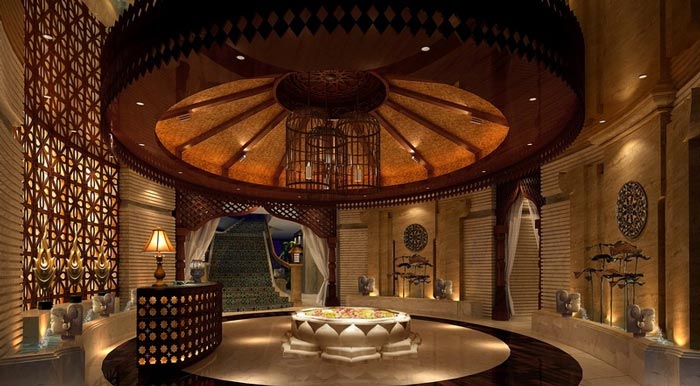 在空間及功能上,立體大氣且具有東南亞風(fēng)情的接待大廳與風(fēng)格典雅奢華的異域包廂相結(jié)合,再巧妙地融入東方獨(dú)到著佛教元素,從文化和生活層面?zhèn)鬟_(dá)出現(xiàn)代人對(duì)休閑養(yǎng)生的高品質(zhì)追求。