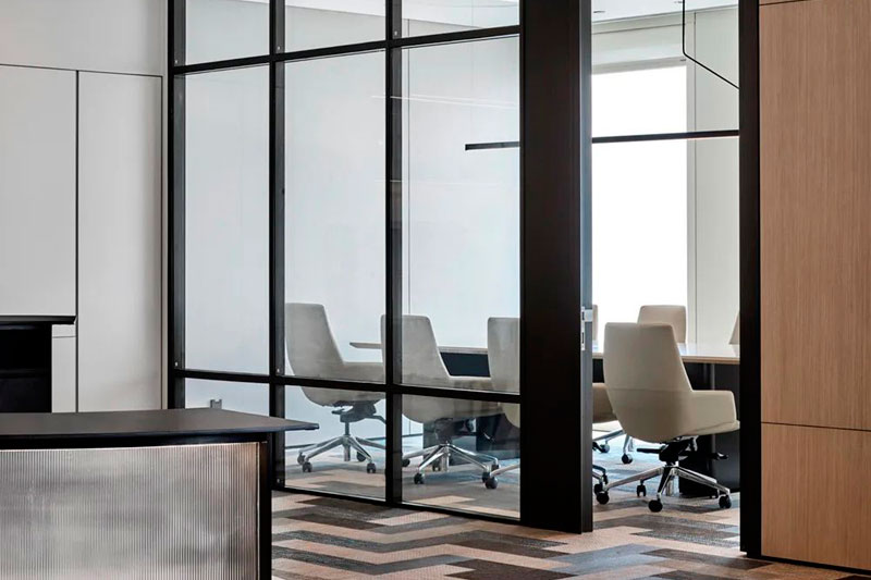 后場(chǎng)辦公區(qū)延續(xù)了前廳的辦公理念,結(jié)合不同功能形式的會(huì)議室、電話間,提供了多選擇的工作模式,簡(jiǎn)潔而高效。大量可再生面料的墻飾、可回收吸音板和仿生苔蘚的應(yīng)用,豐滿了視覺(jué)層次并極大提升了空間的聲學(xué)效果。