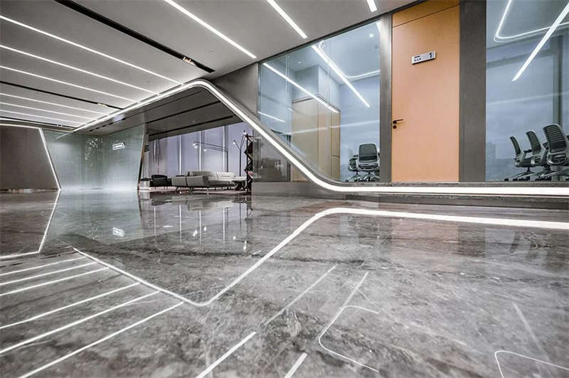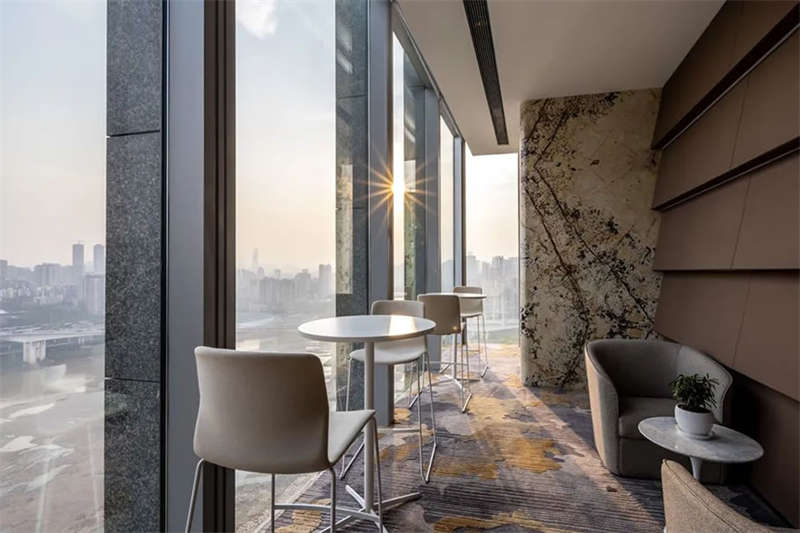 此辦公場所融合行業(yè)范式、藝術(shù)、辦公、會(huì)客和休閑功能,豐富的城市景觀與奢華的家具用材將空間美學(xué)統(tǒng)一起來,落地窗獲得更多明亮場域,空間通透舒朗,客戶進(jìn)入空間能感受到簡潔明亮的氛圍。