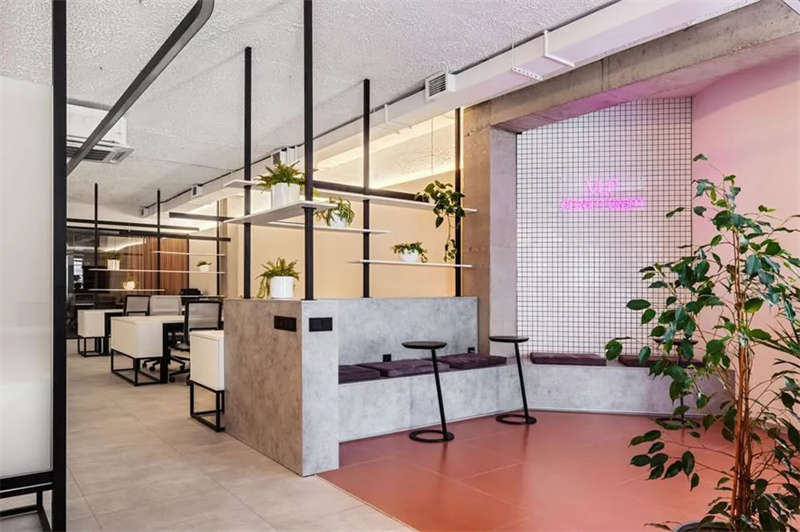淺灰色的頂面與地面,配以白色墻體和主體辦公家具,再輔以縝密的燈光照明,讓室內(nèi)呈現(xiàn)明亮純凈的光彩質(zhì)感;黑色線性元素的加入豐富了空間構(gòu)成和視覺趣味性;唯一的暖棕色彩的點(diǎn)綴讓空間更靈動更富有層次感,也為純凈極簡的空間帶去一抹溫暖氣息。