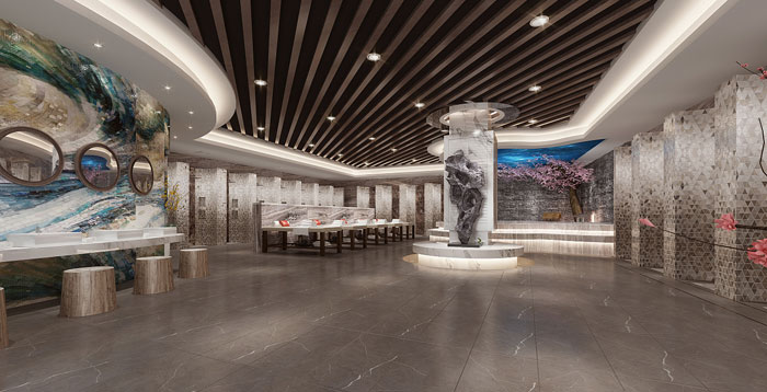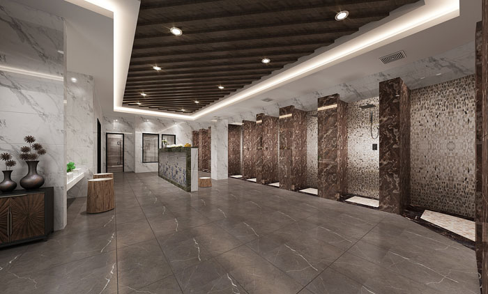 整體是現(xiàn)代風(fēng)格,深色系背景,貴氣十足,給人舒心的感官.細(xì)節(jié)處理到位,比如男/女浴區(qū)設(shè)計(jì),關(guān)鍵是做好防水,其次是品味,關(guān)鍵是高端,衛(wèi)生是第一.客人來洗浴中心,通常是要準(zhǔn)備洗澡,消除一天的乏倦,以及消除一些商務(wù)活動或工作上所附帶的灰塵.