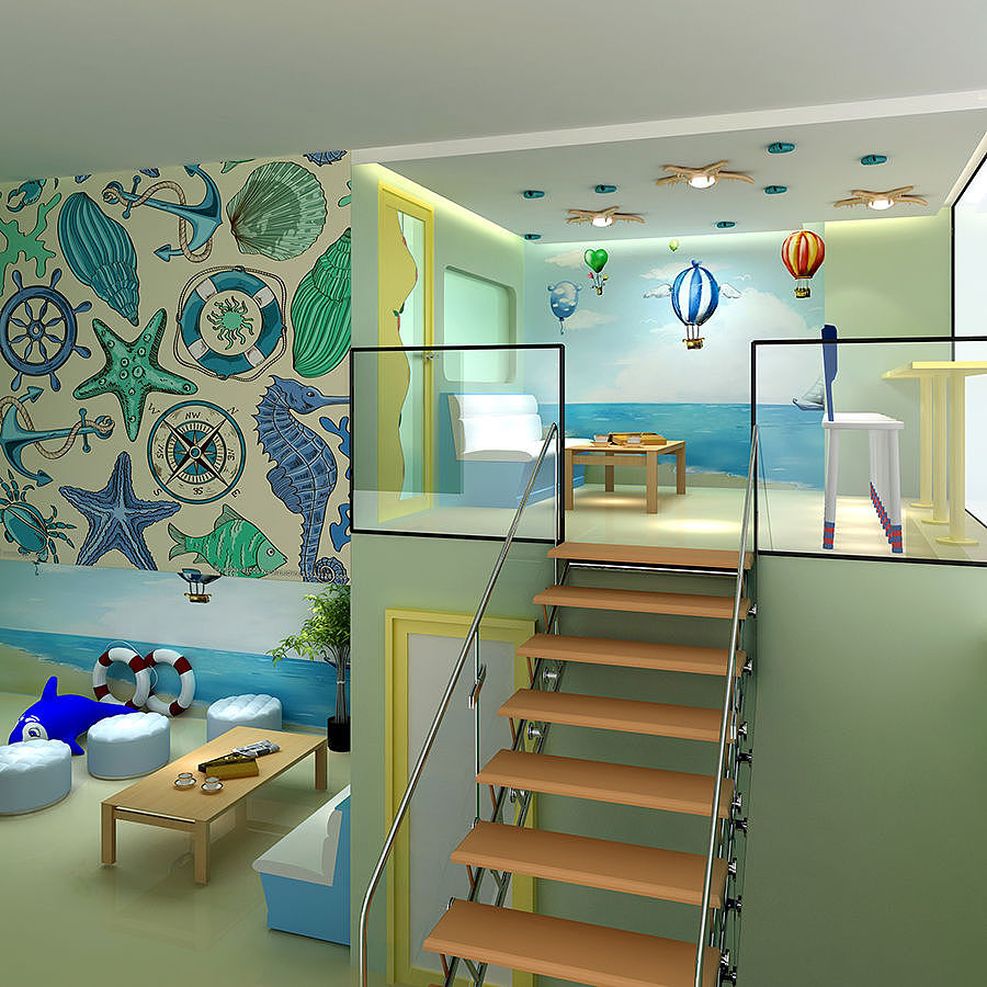 該設(shè)計(jì)以海洋樂園為主題,整體設(shè)計(jì),顏色繽紛艷麗,造型充滿童趣,讓大人和孩子都樂在其中.每個(gè)空間又都有他不同的味道,但最終都和親子這個(gè)元素相呼應(yīng),親子,海洋,樂園,這幾種元素融合在一起,一定是一個(gè)美妙的兒童天堂.