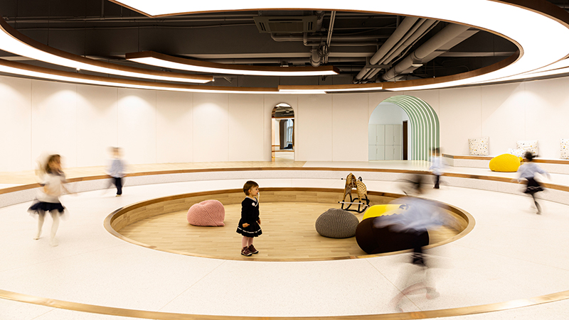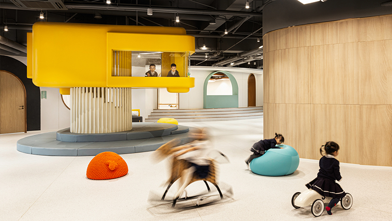 兒童喜歡通過身體來丈量和感知空間.因此,創(chuàng)造符合兒童生理尺度的空間能夠激發(fā)更多的行為方式.兒童也常喜歡待在自己可觸摸到的小空間中.設(shè)計(jì)創(chuàng)造出的空間價(jià)值可以賦予使用者特殊的魔力,在豐富多樣的教娛空間中,每一個(gè)孩子都是不受束縛的夢想家.用簡潔明亮的色彩把控,勾勒出空間內(nèi)不失童趣的高級(jí)質(zhì)感,培養(yǎng)孩子的基礎(chǔ)美學(xué)與審美素養(yǎng),正是空間帶來的啟蒙.