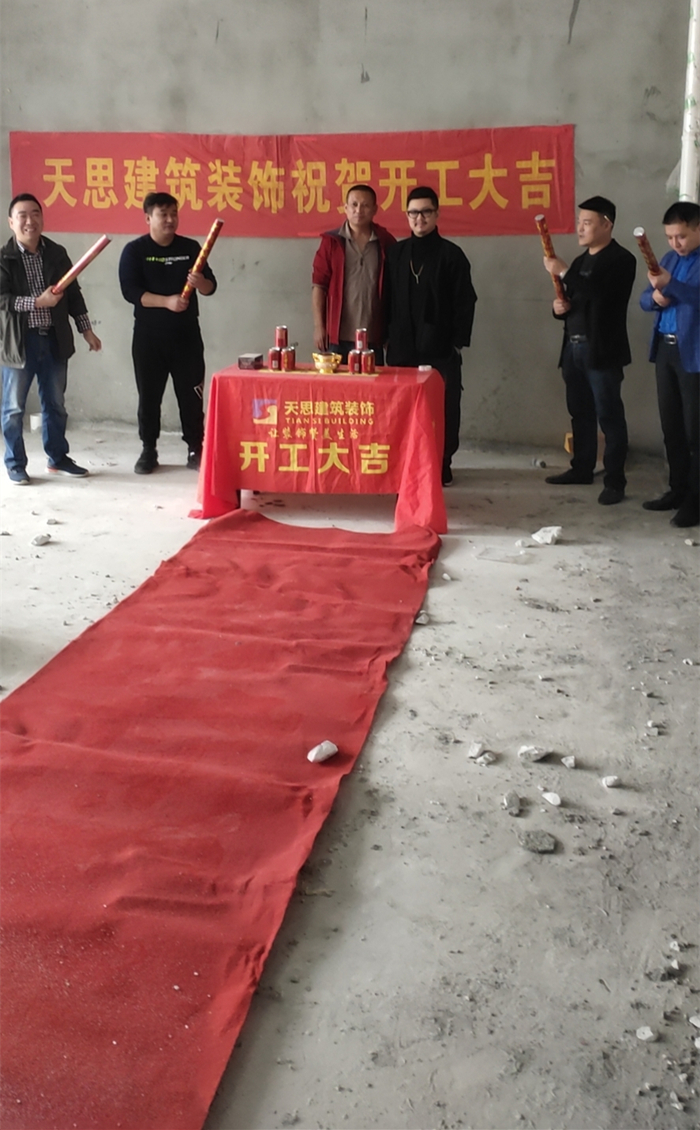 喜慶的開工桌,龍頭開工錘,鮮花美酒水果為此次開工儀式營造了一個喜慶、和諧、美滿的氛圍,預示著整個項目的平安順利,和諧美滿,也預?;疱伒觊_業(yè)后能夠財源廣進.