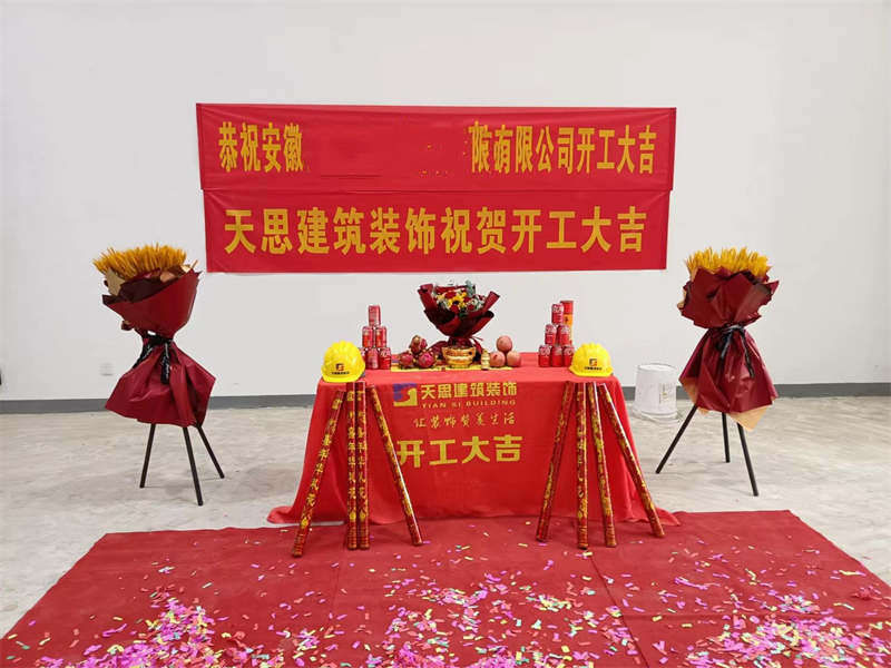 天思裝飾在此攜全體員工恭祝安徽一2000平科技廠房開(kāi)工大吉?。?!感謝業(yè)主對(duì)我們天思建筑裝飾的信任,我們必不負(fù)所托,保證工程的效率與質(zhì)量,將項(xiàng)目完美完成,交給客戶一份滿意的答卷!