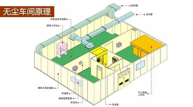 達(dá)到要求的這樣一個(gè)穩(wěn)定生產(chǎn)環(huán)境即稱(chēng)為無(wú)塵車(chē)間,也叫潔凈廠房、潔凈室(Clean Room)、無(wú)塵室。無(wú)論外部條件怎么變化,其室內(nèi)均能維持符合原先設(shè)定要求的潔凈度、溫濕度及壓力等性能。
